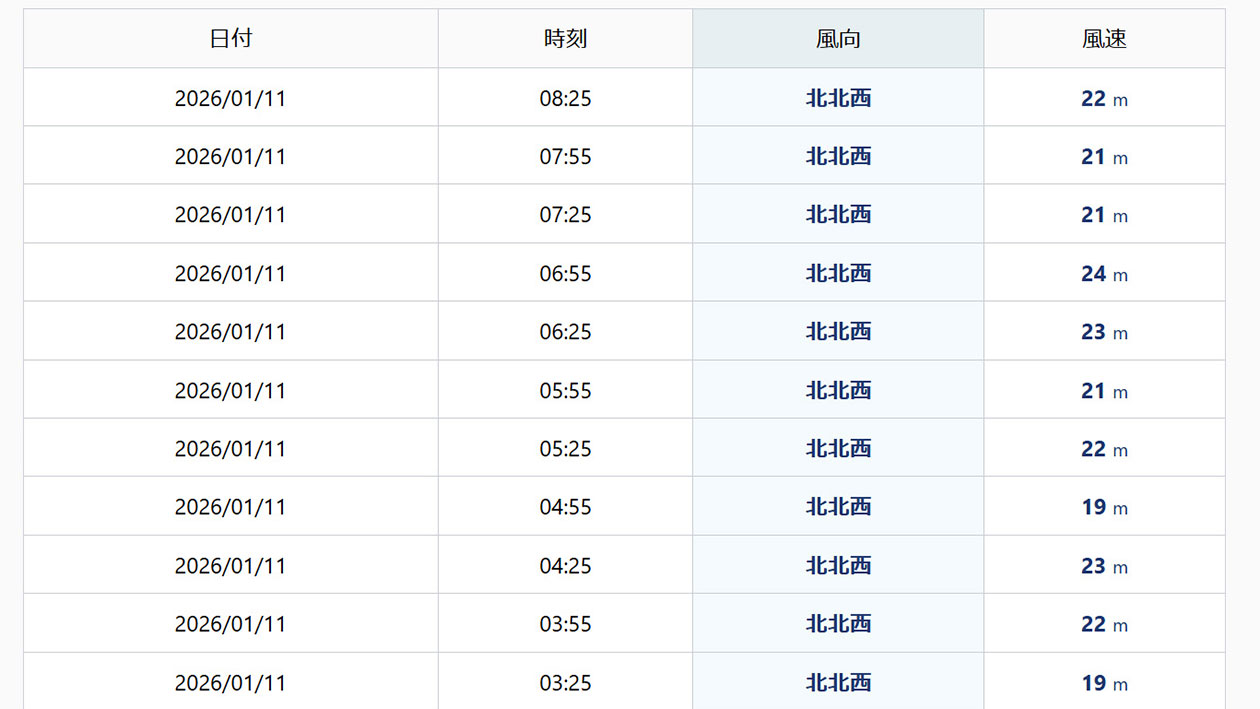 また、風も強い1日で、沖の島では、20mを超える風。